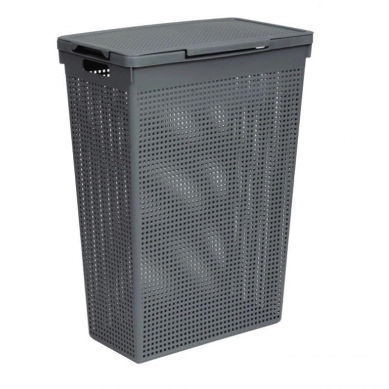 Корзина д/белья с крышкой 50 л ЛОФТ серая узкая